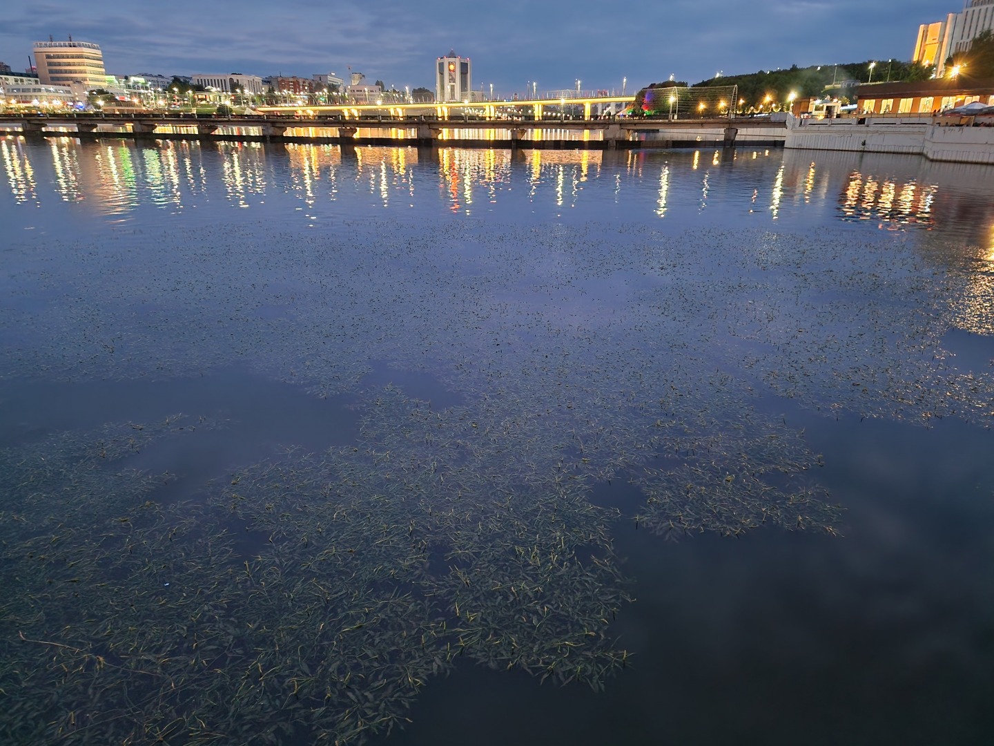Вода на заливе покрылась водорослями: