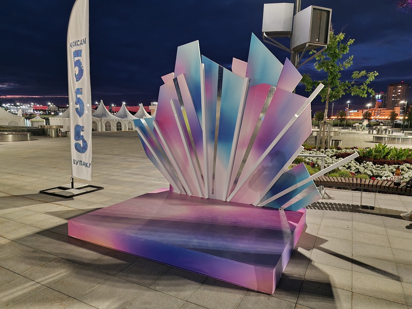 И самой скучной и неподготовленной оказалось Певческое поле. Кроме этого стенда, я там ничего не обнаружил. Впрочем, еще ночь впереди. Там будет зарядка со звездой и разные спортивные мероприятия.