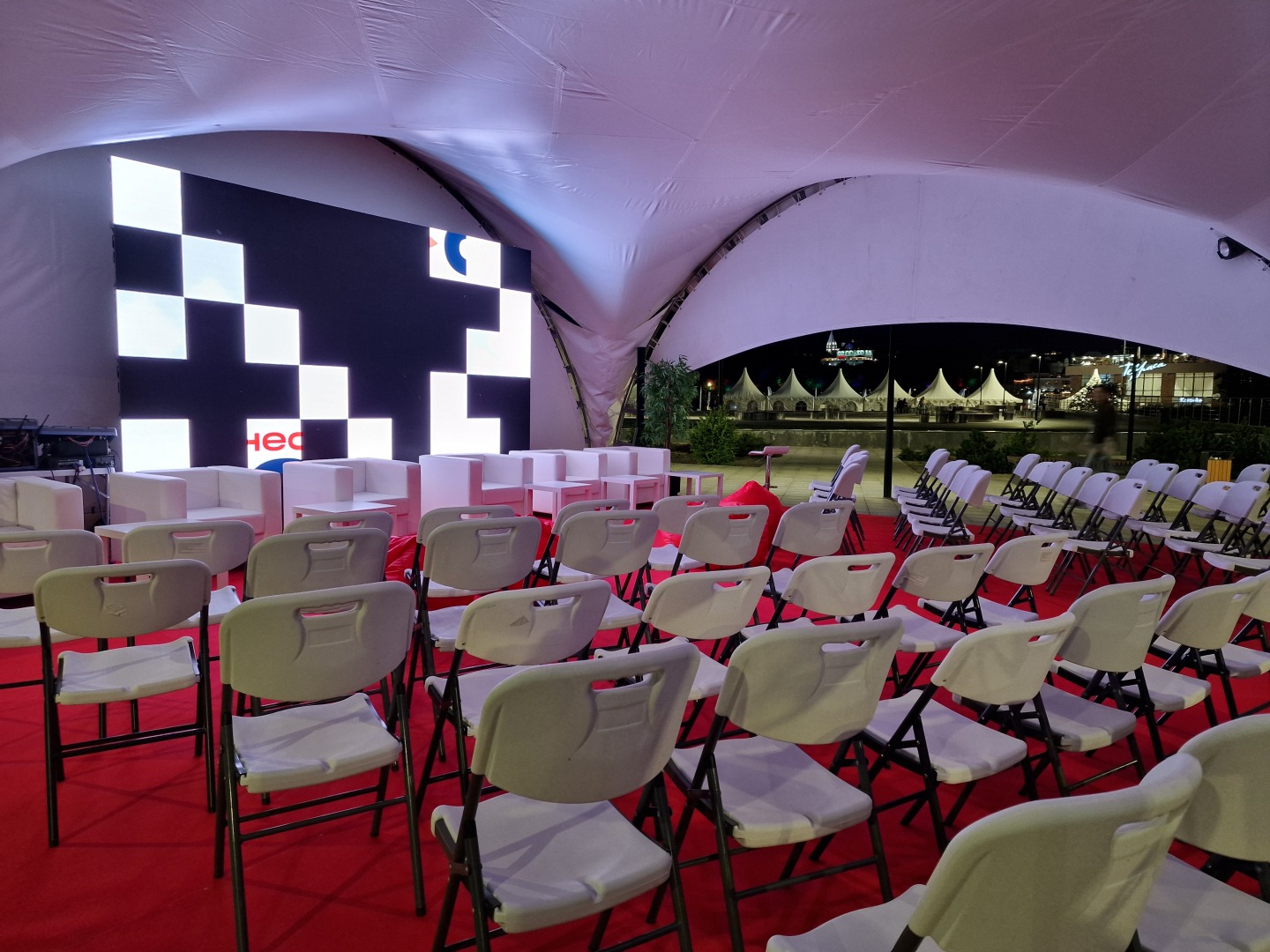 У здания Национального музея смонтировали два больших шатра: