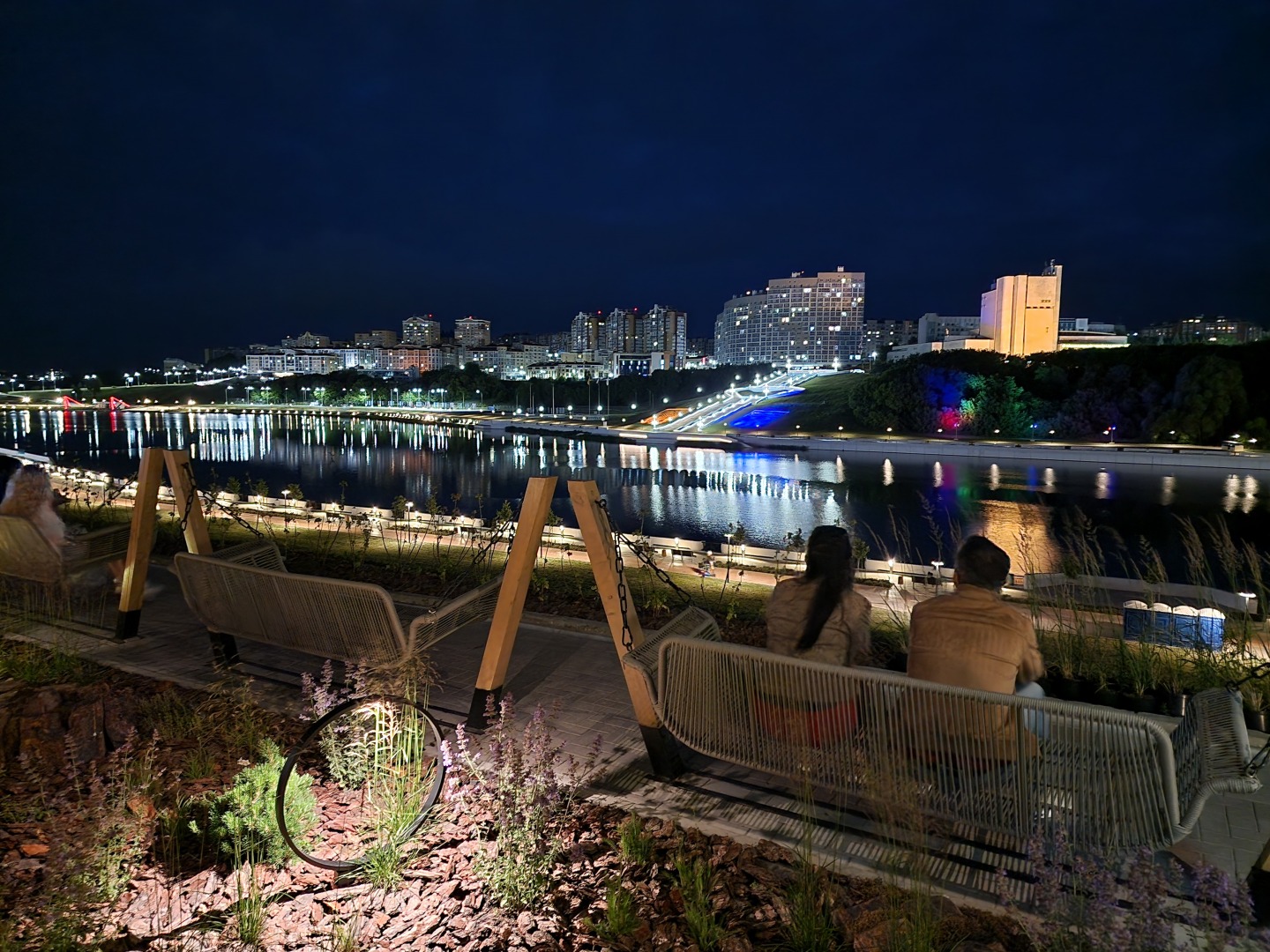 Даже в 22:30 люди сидели на склоне: