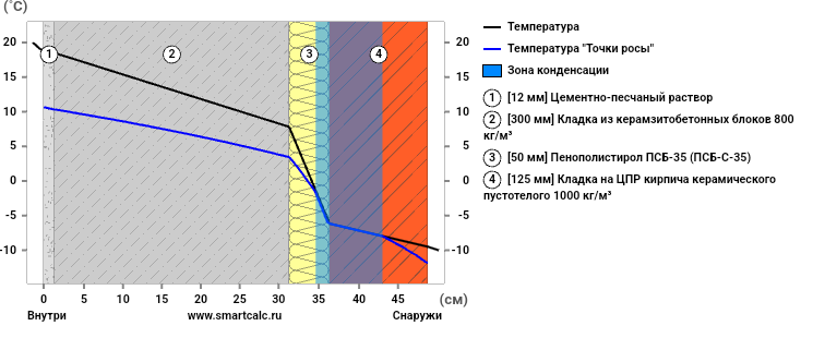 Шлакоблок + ППС 100 мм + штукатурка на треть меньше потерять тепла за год дали бы